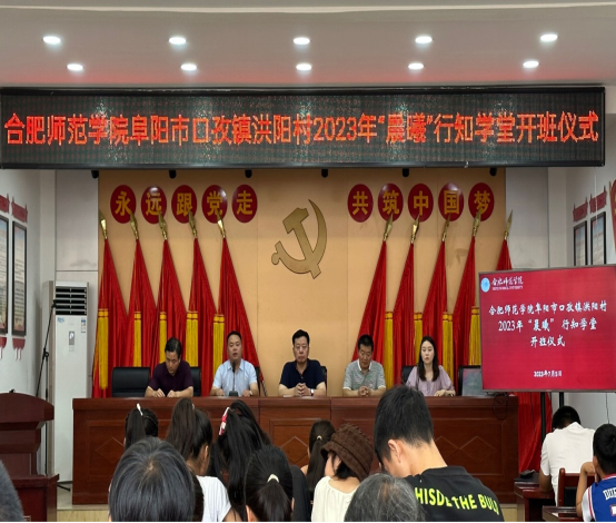 本网讯 7月6日上午,beat365正版唯一官方网站阜阳市颍东区口孜镇洪阳村“晨曦”行知学堂开班仪式在洪阳村党群服务中心举行。阜阳市颍东区口孜镇洪阳村党总支书记王永兴,beat365正版唯一官方网站beat365正版唯一官方网站党委书记、洪阳村第一书记、驻村工作队队长王东明,洪阳村驻村工作队副队长王新成,洪阳村驻村工作队队员王晓明,beat365正版唯一官方网站团委书记江淼和全体“小先生”、小学员及学员家长参加开班仪式。仪式由江淼主持。