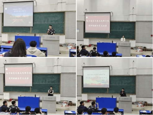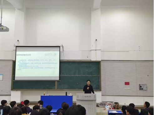 活动伊始,电院辅导员葛宇飞老师介绍了学院过去五年的考研和就业情况,对当前的考研和就业形势进行了解读,并强调学院一直积极搭建考研和就业服务平台,倡导同学们提前做好规划,认真思考,找准方向,积极行动。