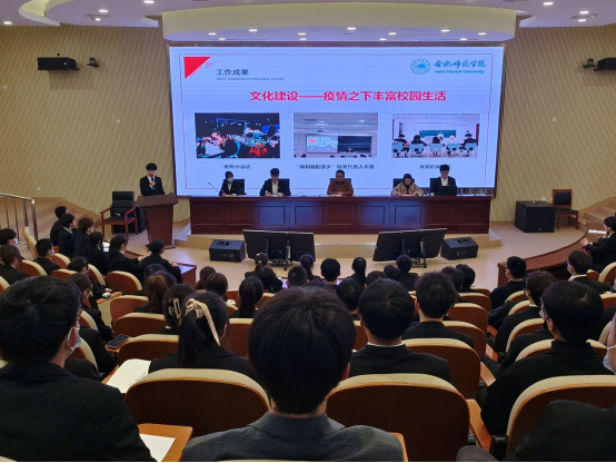 随后,电院分团委书记江淼作学院共青团工作汇报,第四届学生会主席团成员金吕峰同学作学生会工作汇报,他们分别回顾了上一学年学院团委、学生会的工作和取得的成绩,并对今后工作作出了规划和展望。