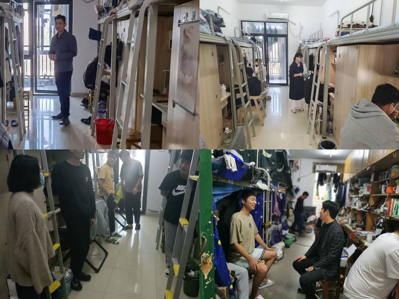 为保障好每一位同学的学习生活和身心健康,党委副书记胡石清和全体辅导员老师加大深入学生宿舍频次,仔细巡查各寝室同学的上课情况,了解学生疫情防控状态下的思想状况及学习生活需求,并就地开展心理辅导疏忧解困,及时妥善处理诸有关涉及学生学习生活问题,进一步助力线上教学平稳开展。