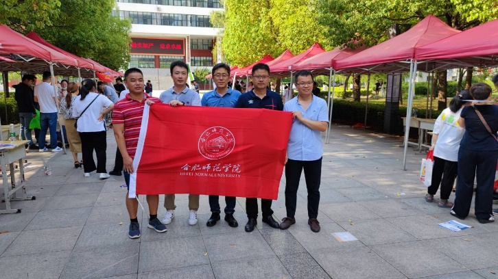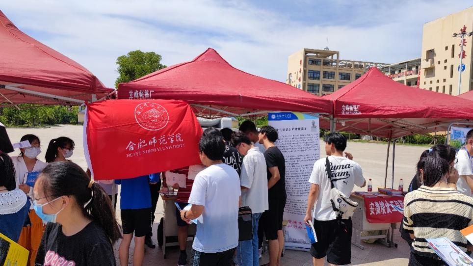 宣讲结束后,电信学院张忠祥院长、孔勐、柴豆豆老师和化工学院项吉、杨亮老师等在亳州二中广场上接受了众多意向报考考生的现场咨询。