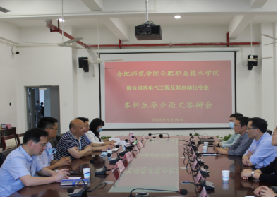 本网讯 5月19日上午,我校与合肥职业技术学院联合培养的2022届电气工程及其自动化专业(专升本)毕业论文答辩会在合肥职业技术学院举行。合肥职业技术学院副校长周晓隆、教务处副处长(主持工作)窦红平、机电工程学院院长胡木林、党总支书记王克勇、副院长孙新梅,beat365正版唯一官方网站电子信息与电气工程学院院长张忠祥、副院长范程华、相关专业负责人、答辩组老师以及2022届全体本科生参加了此次毕业论文答辩。