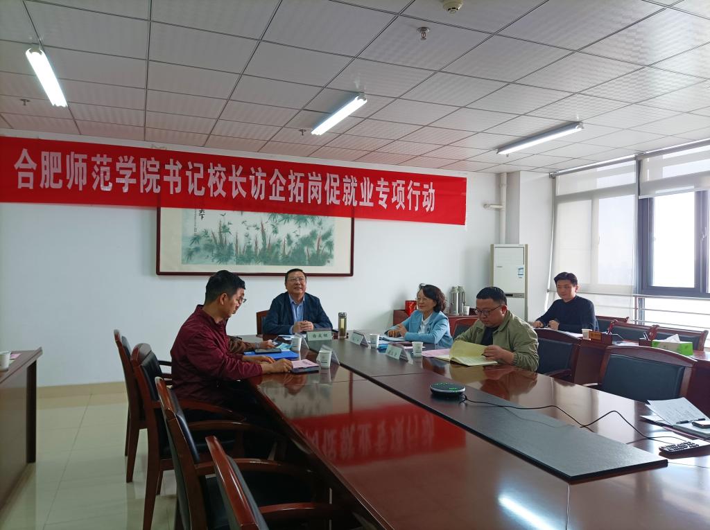 徐成钢代表学校党委对公司长期以来关心支持我校就业工作、悉心关注校友成长发展表示感谢,系统介绍了我校历史沿革、学科专业、人才培养等基本情况,高度肯定了双方的合作成效,并提出三点希望。一是立足新的起点,强化交流合作,共同开创校企合作的新篇章;二是激发新动能,推动优质发展,找准人才培养与服务地方发展的契合点;三是踏上新征程,踔厉奋发向前,引导更多青年投身科技兴邦、实业报国,在青春赛道上跑出新速度。徐成钢强调,要进一步抢抓机遇、乘势而上,大力推动合作成果落地见效,加快高质量人才培养步伐,为服务安徽“三地一区”建设提供更加强有力的智力支持和人才保障。