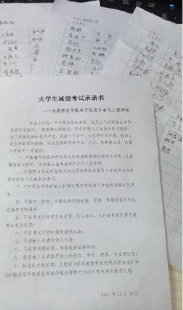 本网讯 为进一步贯彻落实立德树人根本任务,促进大学生道德诚信建设,增强当代青年学生的诚信意识,营造安全、公平、公正的考试环境,12月中旬以来,电子信息与电气工程学院在锦绣、滨湖两校区陆续召开期末考试诚信教育暨安全教育主题班会。会议由各年级辅导员主持。