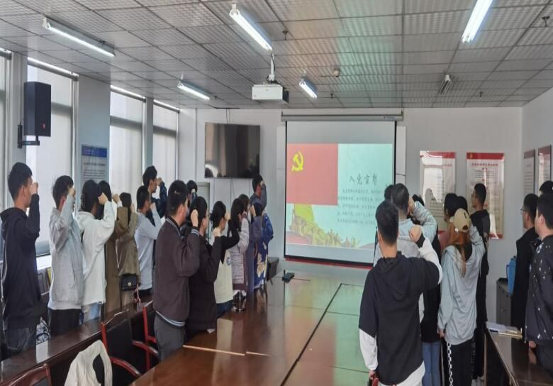 “我志愿加入中国共产党,拥护党的纲领,遵守党的章程……为共产主义奋斗终身,随时准备为党和人民牺牲一切,永不叛党!”伴随《国际歌》响起,15名新党员面向鲜红的党旗,举起右拳许下铮铮誓言,进一步坚定理想信念,不忘初心使命。