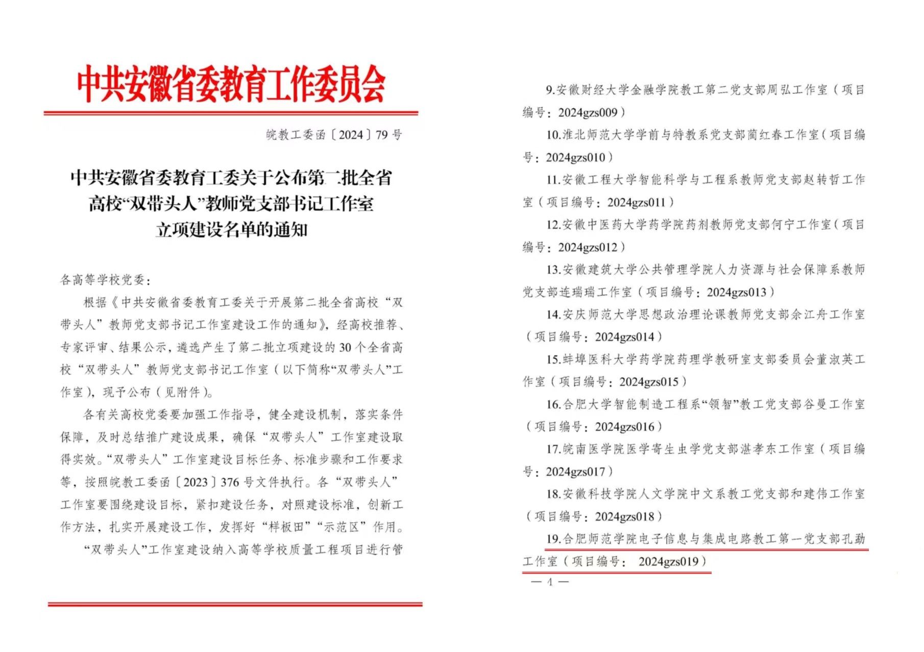 本网讯 近日,中共安徽省委教育工委发布《关于公布第二批全省高校“双带头人”教师党支部书记工作室立项建设名单的通知》,遴选建设全省高校30个 “双带头人”教师党支部书记工作室,我校beat365正版唯一官方网站教工第一党支部孔勐工作室获批立项建设。