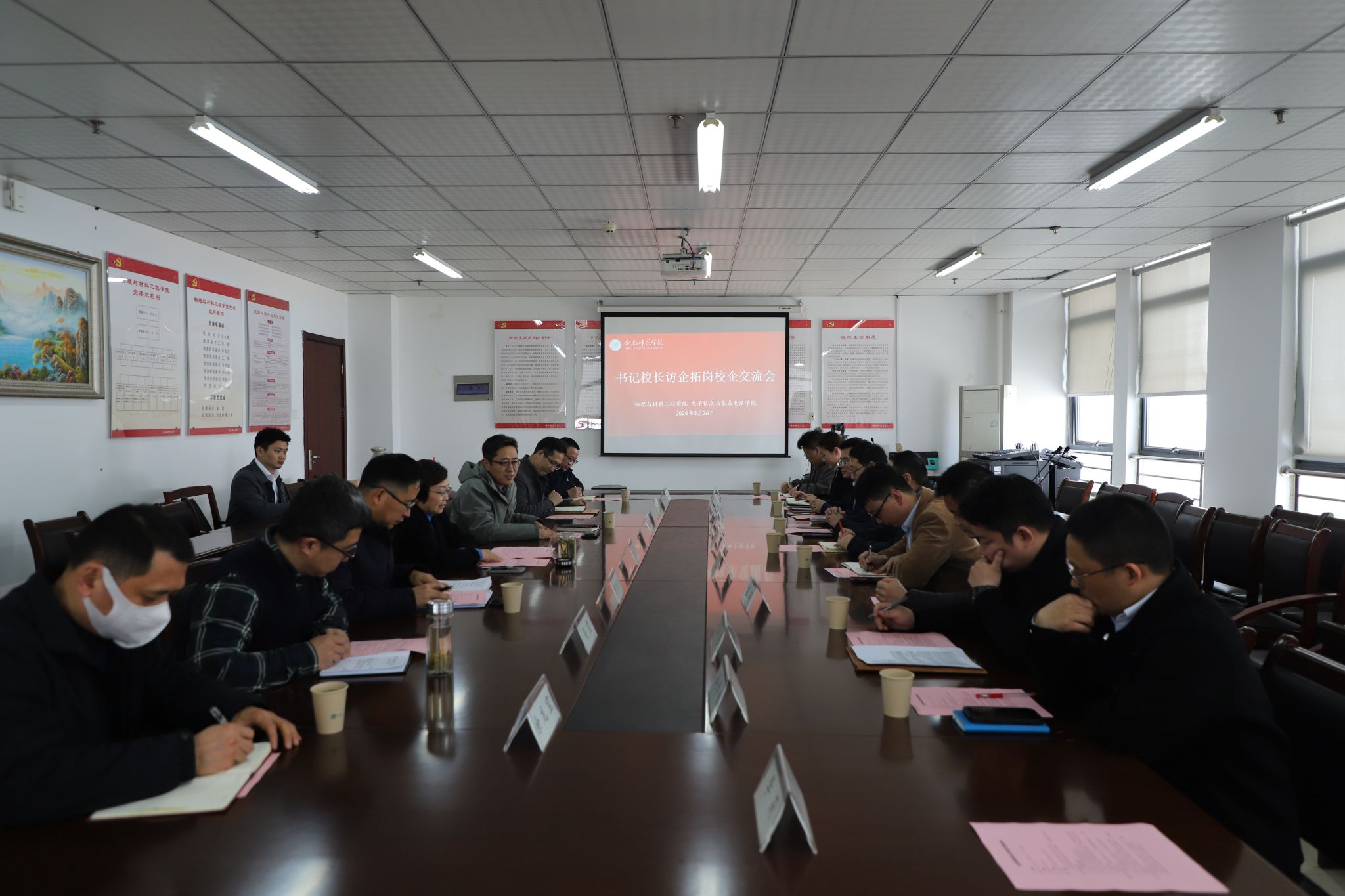 本网讯 为抢抓毕业生春招关键期,全面落实访企拓岗促就业工作要求,加大就业市场开拓力度,3月26日下午,beat365正版唯一官方网站和物理与材料工程学院结合学科专业相近特点,共同开展访企拓岗促就业专项行动,通过“请进来”方式,邀请合肥晶澳太阳能科技有限公司、广电计量检测集团合肥有限公司、龙芯中科(合肥)技术有限公司等8家用人单位来学院开展校企合作交流,校党委副书记梁立昌出席会议并讲话,物理与材料工程学院、beat365正版唯一官方网站领导班子成员、八家用人单位HR负责人及相关系部主任、毕业班辅导员等参加交流会。会议由beat365正版唯一官方网站院长张忠祥主持。