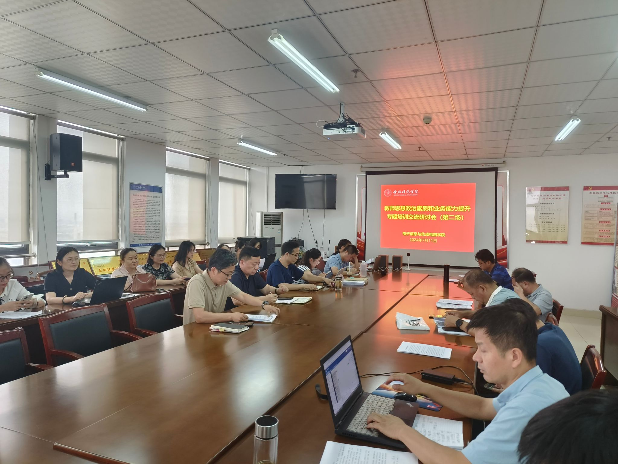 本网讯 7月10日—11日,根据学校教师思想政治素质和业务能力提升专题培训工作安排,beat365正版唯一官方网站积极组织全体围绕培训主题,开展了2场交流研讨活动,学院党政班子、全体教职工参会,会议由党委副书记、院长张忠祥主持。