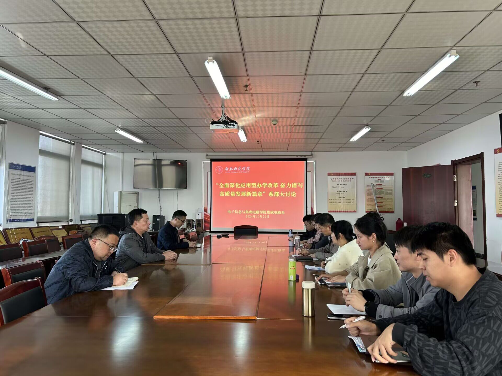 各系部组织全体教职工集体学习了全国教育大会精神,教育部、安徽省人民政府印发《推动结构优化、建设高质量高等教育体系共同行动方案》以及《beat365正版唯一官方网站高质量发展三年行动重点任务(2024-2026年)》等。与会人员结合所在学科专业特点和工作实际,梳理了学院在人才培养、专业建设、实验室建设、产学研合作等方面工作现状及存在的问题,聚焦省级双特学科、省级高峰学科、国家一流课程等学科专业建设工作以及硕士点建设、科研成果转化、学生科技创新竞赛、重大奖项申报等学院重点工程,提出了工作建议和有关计划。