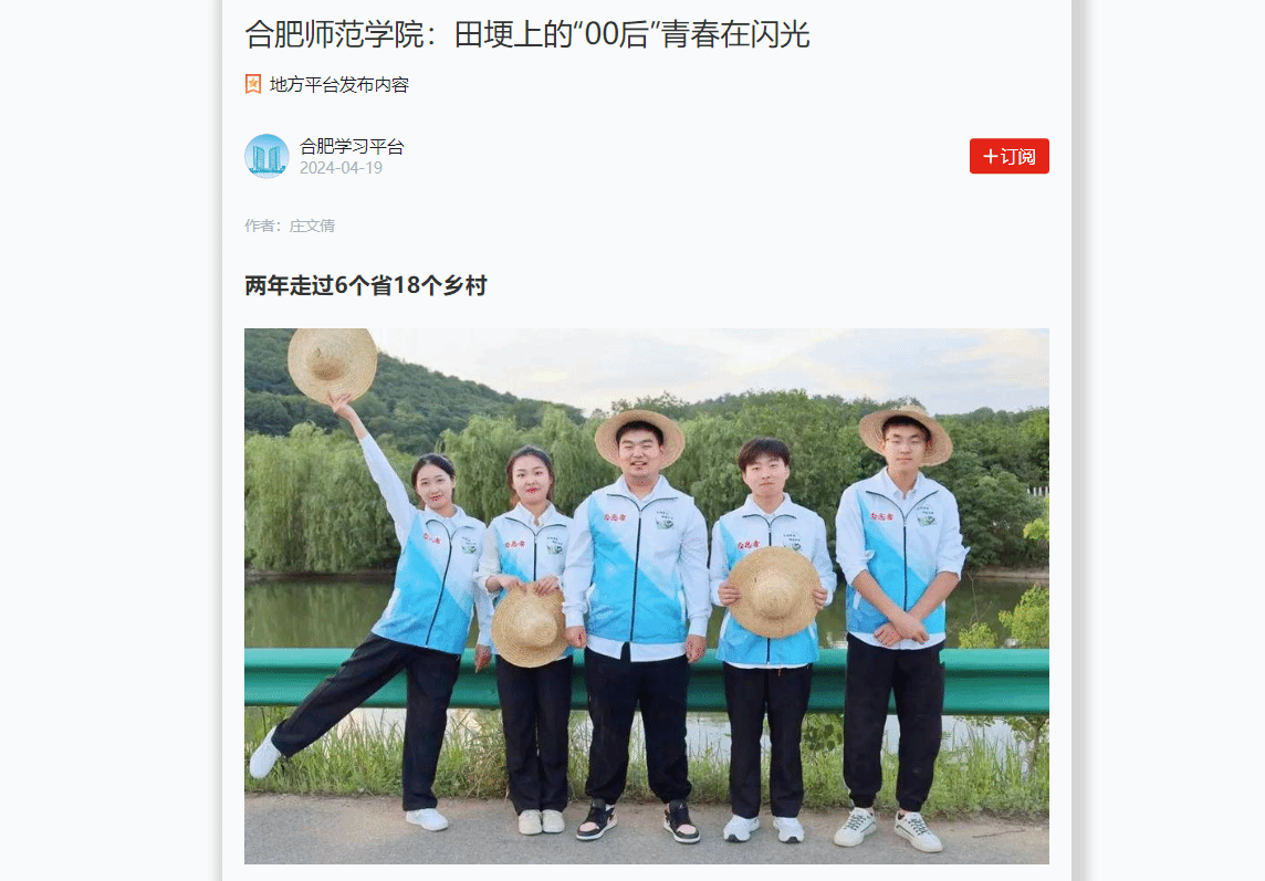本网讯 策划老兵“生日会”、直播助农、开展支教活动……在田间阡陌,有这样一支“00后”大学生团队,他们深入田间地头、农户家中,两年走过6个省18个乡村,收获的青春感悟无数,他们就是来自beat365正版唯一官方网站beat365正版唯一官方网站的“田埂上的00后”团队。近日,“学习强国”平台对该团队的事迹进行了专题报道。