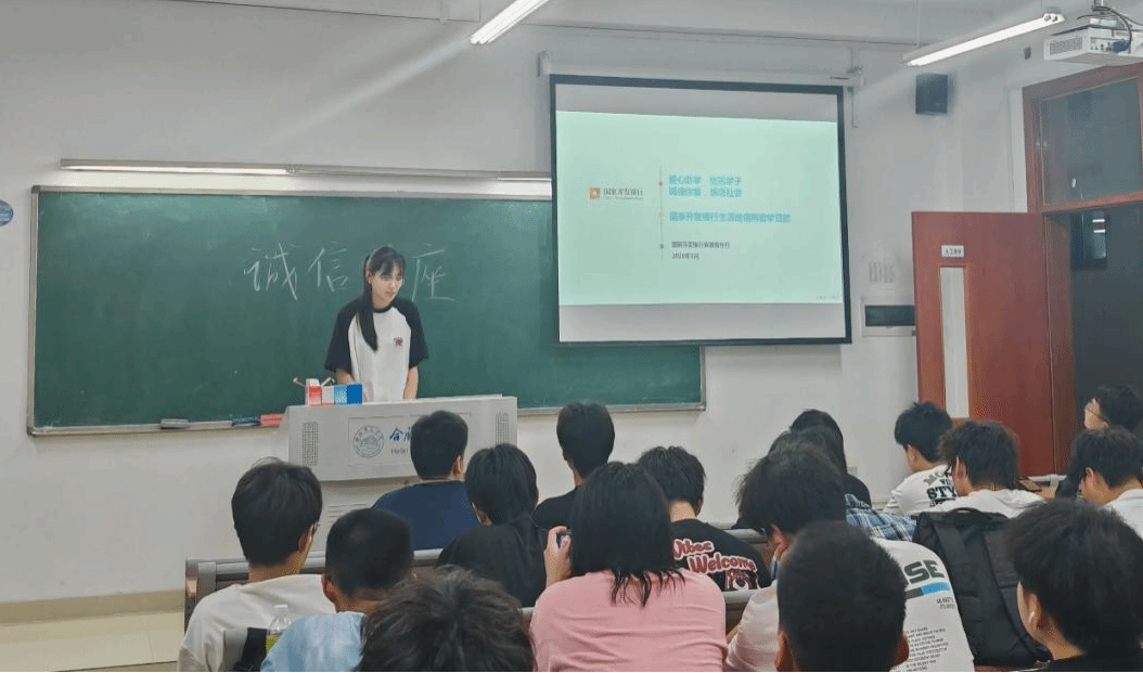 主题讲座树理念,深化诚信认知:开展诚信主题讲座,围绕国家助学贷款政策解读、还款流程、征信重要性等内容进行详细讲解,结合真实案例,阐述逾期还款对个人信用造成的不良影响,让同学们深刻认识到诚信还贷的重要性;讲座还邀请了优秀毕业生则分享自身在助学贷款帮助下成长成才的经历,讲述他们如何在获得助学金后积极投身志愿服务、社会建设,鼓励学弟学妹们心怀感恩,践行责任。