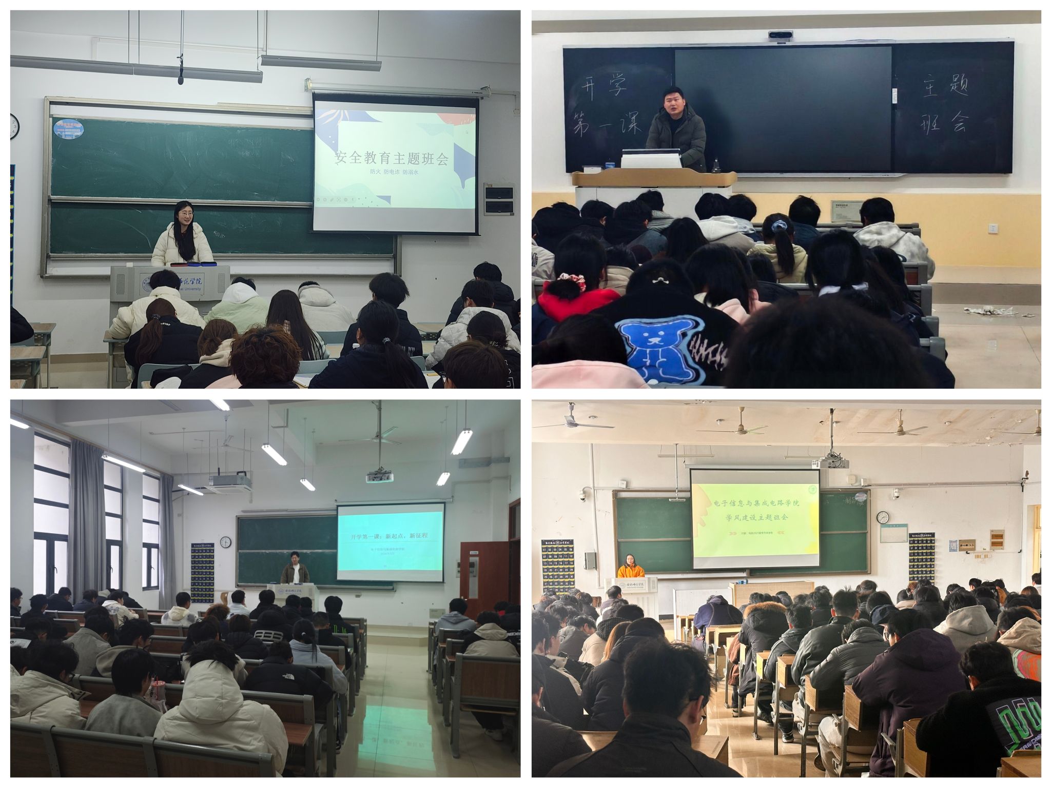 全院辅导员将安全教育贯穿工作全程。通过班会精准掌握学生返校思想动态,确保意识形态工作平稳有序。重申请销假制度,严肃处理无故夜不归宿行为,引导学生严守校规校纪。倡导优良学习习惯,严格落实“手机入袋”制度;强化消防安全意识教育,严禁使用大功率电器。结合春季传染病高发特点,提醒学生勤通风、讲卫生、做好自我防护。依托典型案例深化防诈骗宣传,切实保障学生人身财产安全。同时,针对不同年级学生分级分类、精准施策,为新学期工作注入强劲动力。