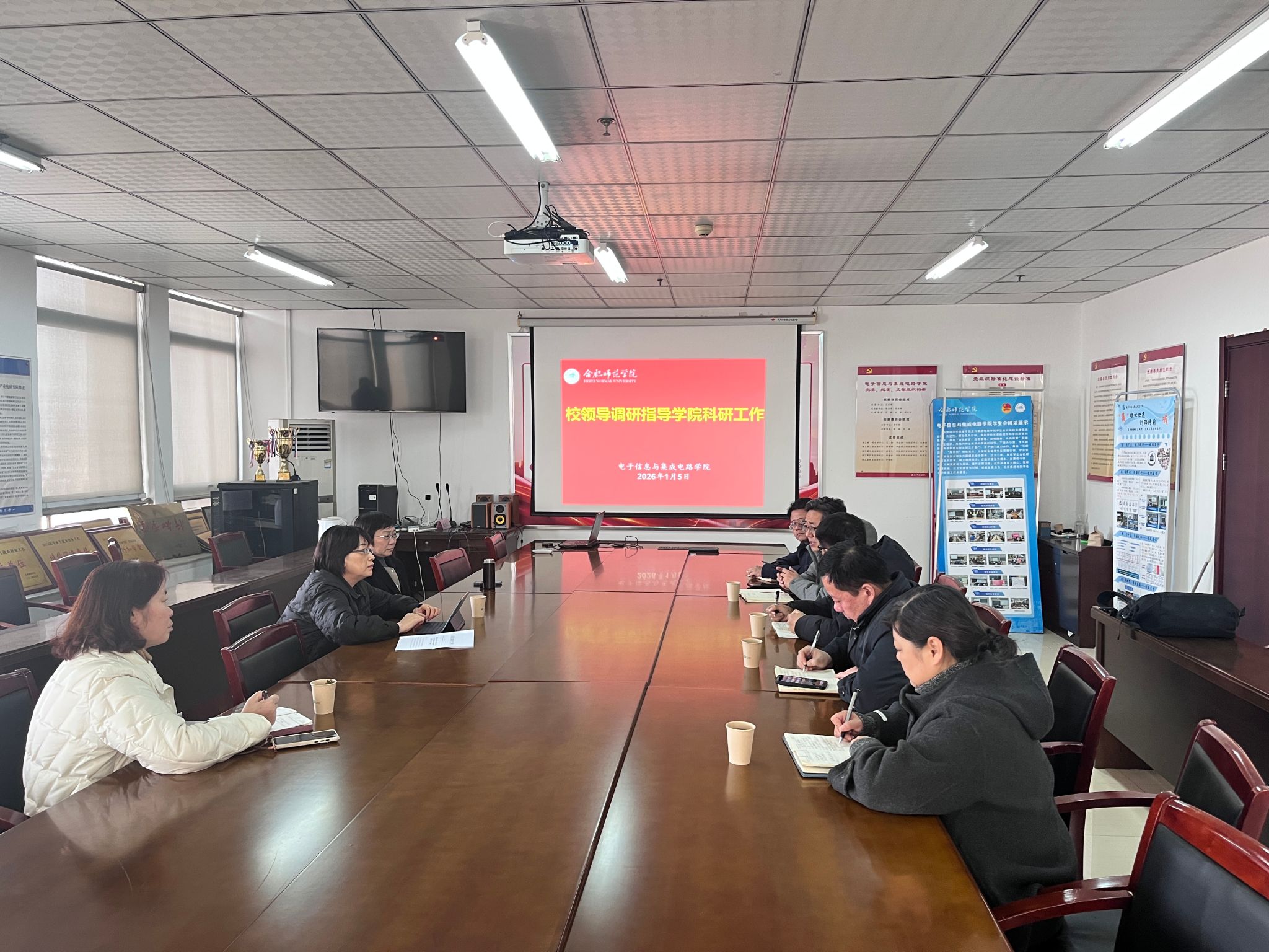 在听取大家的发言后,校长方东玲发表讲话,首先对学院工作成效与科研取得突破给予高度肯定,向姚吉鑫博士团队表达热烈祝贺。她指出电子信息产业是国家战略性新兴产业和安徽省优势方向,希望学院扛起“十五五”规划“领头羊”责任,精准定位谋划;聚焦成果转化、青年教师培育(高质量撰写国家基金项目书)、目标冲刺(2026年更多标志性成果、2028年底关键节点见效、科技进步奖突破)三大任务;拓展低空经济等新兴特色领域,推进新工科建设与课程产业对接,构建和谐科研氛围,助力学校高质量发展。