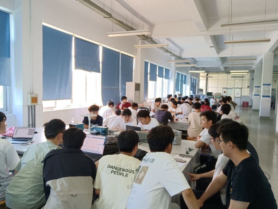 本网讯 为培养学生工程实践能力和创新思维,激发学生科研兴趣和潜力,更好备战省大学生电子设计竞赛,5月19日,2024年beat365正版唯一官方网站大学生电子设计竞赛作品评测在滨湖校区、锦绣校区分别举行。本次大赛由教务处主办、beat365正版唯一官方网站承办,作为省赛的校级选拔赛,竞赛共计吸引了来自全校共40支队伍报名,其中滨湖校区的参赛队伍为低年级同学,共计6组;锦绣校区的参赛队伍为高年级同学,共计34组。