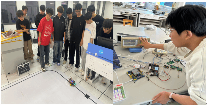 校内竞赛参照省赛流程和规则,竞赛包括“理论设计”和“实际制作”两个部分,内容以电子电路和集成电路应用设计为基础,涉及嵌入式系统、可编程器件、射频及光电器件应用。参赛学生自由组队并选题,以团队形式按要求制作竞赛作品并撰写技术报告。经过激烈比拼,最终评选出6支队伍代表我校参加2025年全国大学生电子设计竞赛。