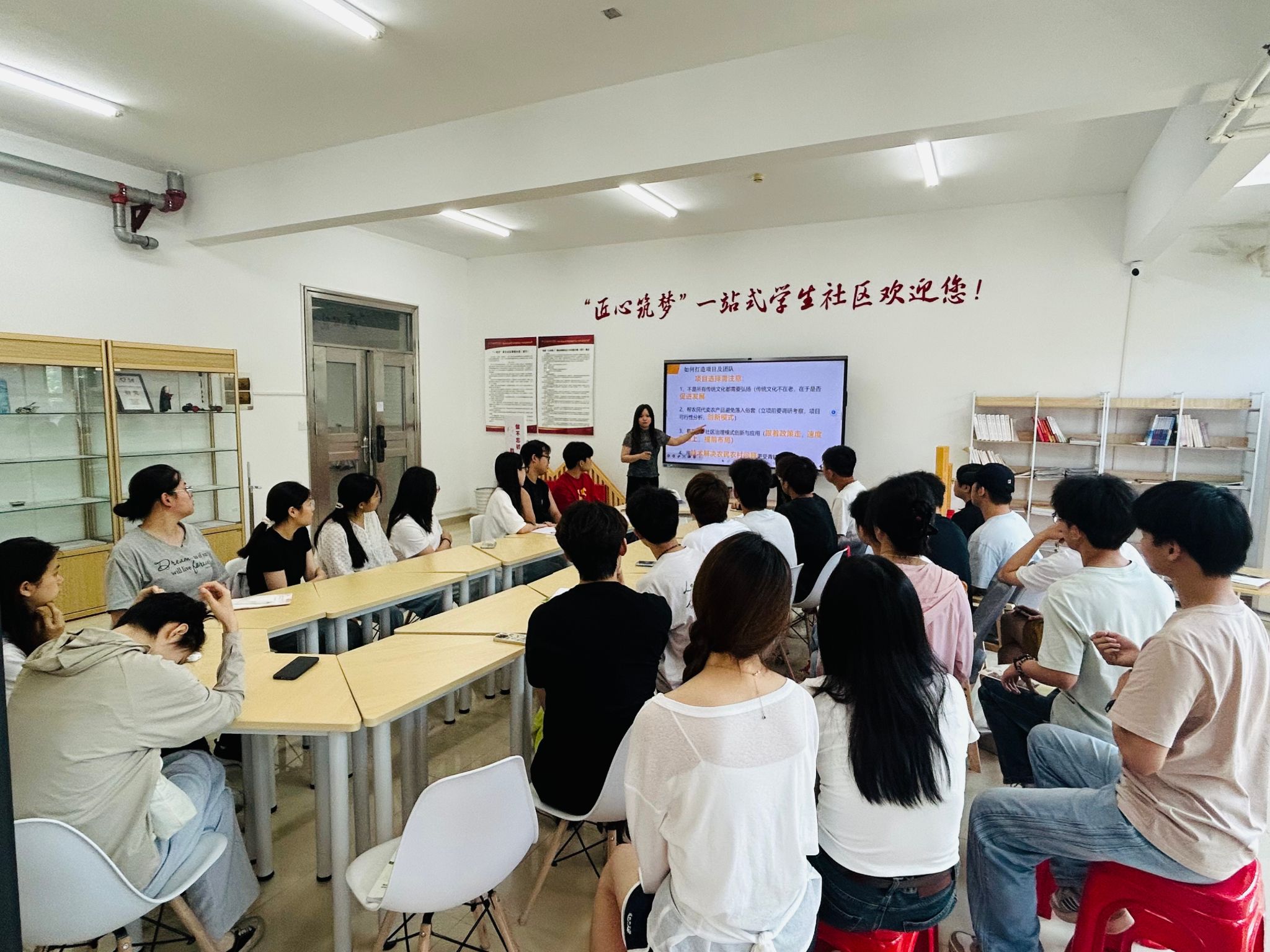 学院充分发挥"一站式"社区平台优势,组织专业导师团队开展分层指导。基础技能培训覆盖12支参赛团队,重点培育项目"智能花盆"凭借创新设计获得《合肥晚报》专题报道。通过案例分析和路演实训等多样化形式,有效提升了学生的创新思维和实战能力。