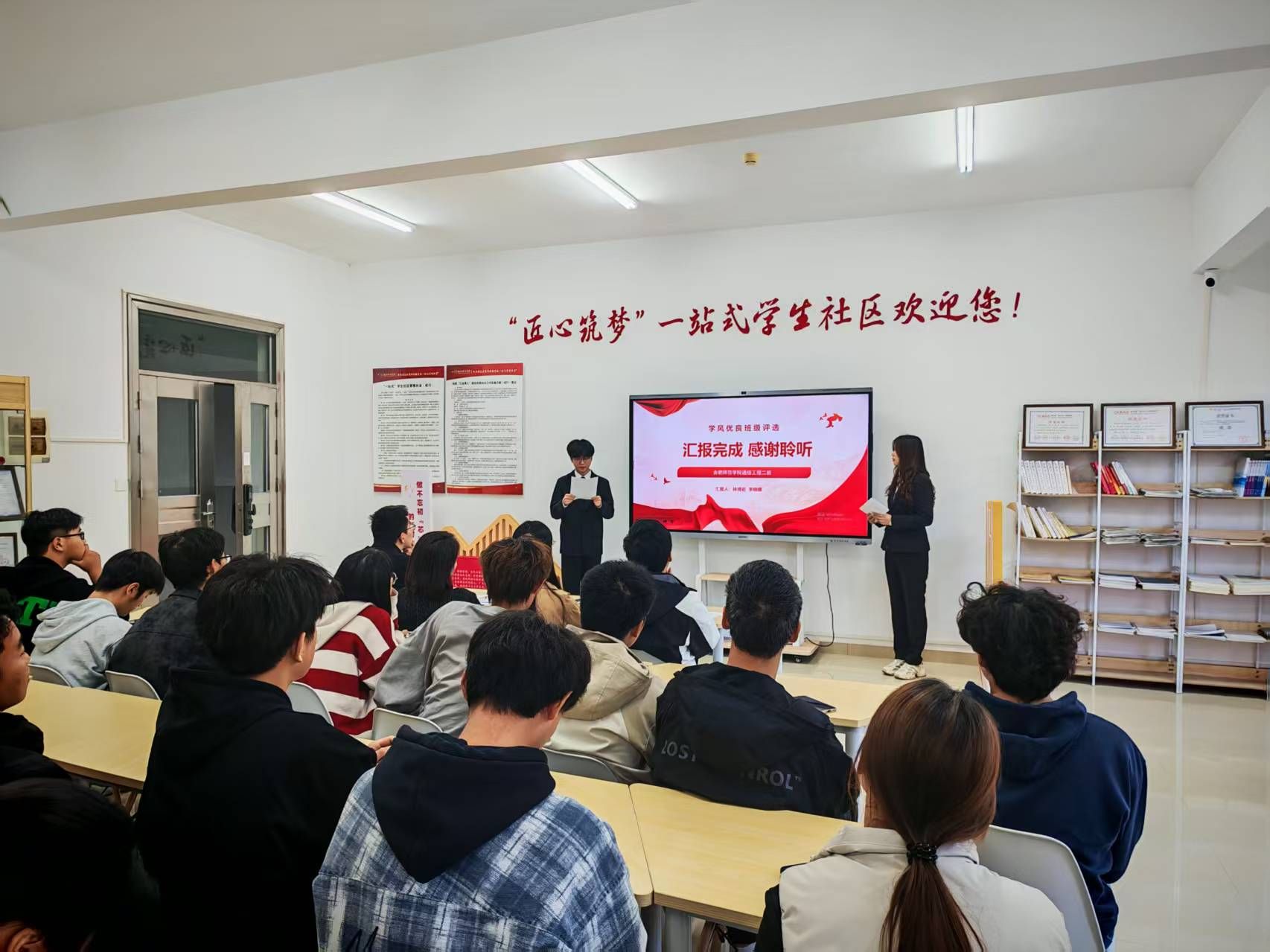 本次评选活动得到了各班级的积极响应和广泛参与。经过前期自主申报和初步筛选,共有多个优秀班级入围最终的现场展示环节。活动现场,各班学生代表依次上台,通过精心准备的PPT、视频和详实的数据,从思想建设、班风学风、学业成绩、学科竞赛、创新创业、文体活动等多个维度,全面而生动地展示了班级在创建优良学风过程中的特色做法与丰硕成果。从由“学霸先锋”组建的答疑小组,到全员参与的“无手机”课堂;从在“挑战杯”、“电子设计竞赛”中摘金夺银的辉煌战绩,到班级成员间团结互助的温馨故事……一个个鲜活的案例,生动诠释了“学风正,则班风兴”的深刻内涵。