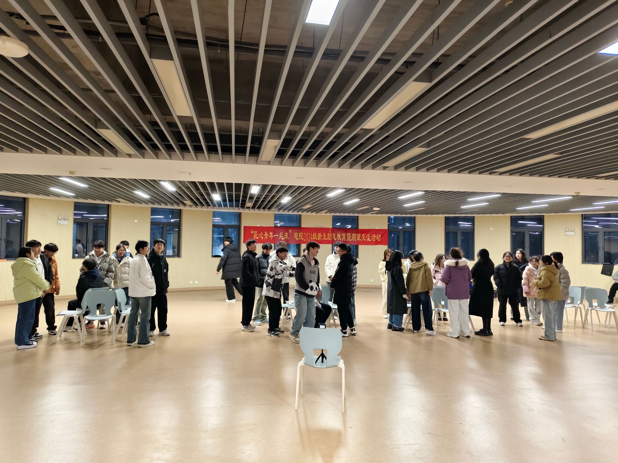 本网讯 为更好地帮助2024级新生适应大学生活、健康成长成才,12月15日晚,在学院一站式学生社区“匠心青年”心理工作站指导下,电院2024级电信工程专业和通信工程专业班级在滨湖校区铭传楼3楼连廊举办“匠心青年一起来”2024级新生励志教育暨朋辈交流活动。