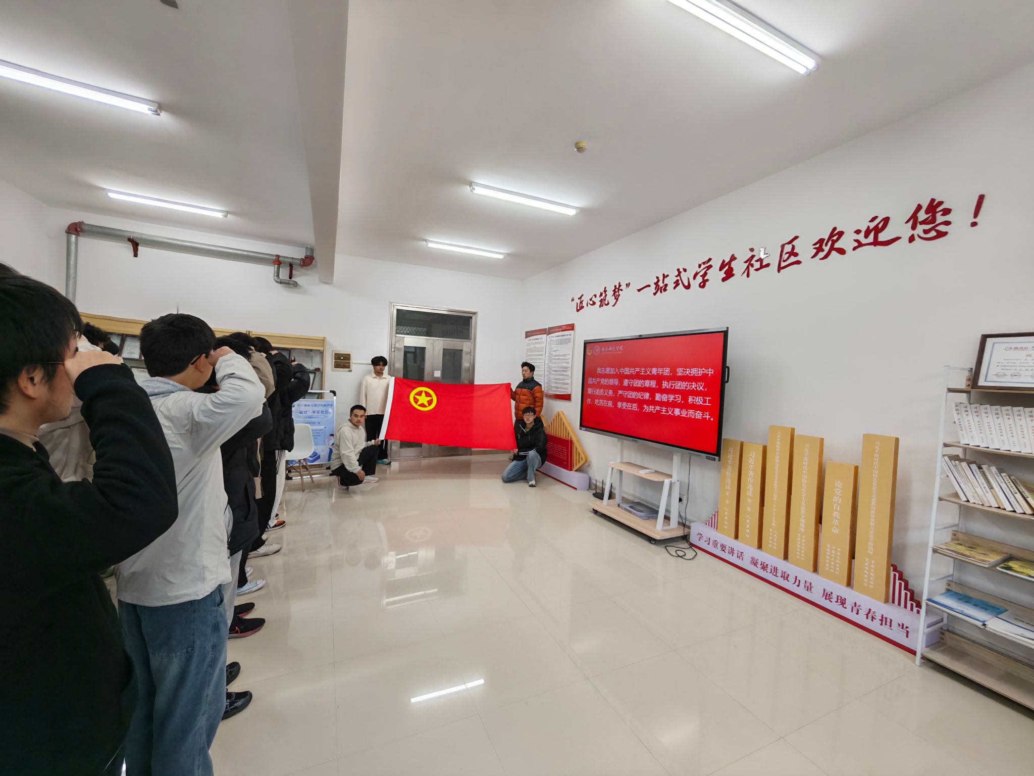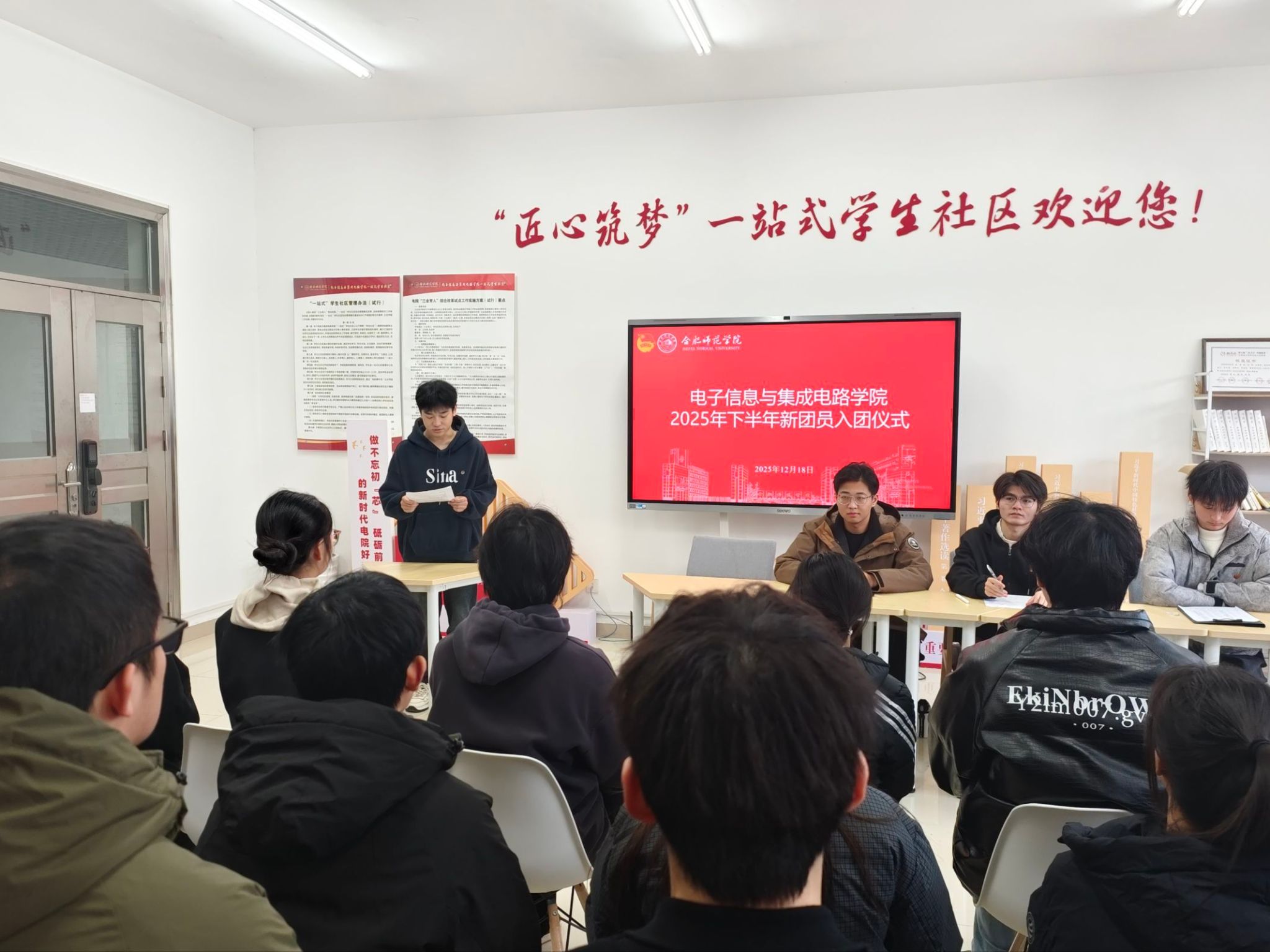 为加强青年思想政治引领,规范团员发展工作,12月18日,beat365正版唯一官方网站在“匠心筑梦”一站式学生社区举行2025年下半年新团员入团仪式。学院团委学生会指导老师马文斌及42名新发展团员参加仪式。